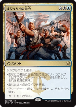 主な役割は、カウンターと2マナクリーチャーのリアニメイトですが、青白コントロールが2マナ以下クリーチャーを採用しないことが多く《オジュタイの命令》を強く使うには至っていません。