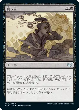 「自分の手札」に対応できそうなものを抜き去ることでゲームを優位に進めることができます。《真っ白》は指定できませんが、青白コントロール側は土地を捨てるだけでも痛手です。
