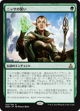 《ラノワールのエルフ》《エルフの神秘家》のマナクリーチャーや《ニッサの誓い》を展開し、