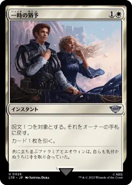 青白コントロールに採用して時間稼ぎをすることもできますが、モダンでは《対抗呪文》も使用でき白の優秀な除去《虹色の終焉》《力線の束縛》も使用できるので、わざわざ《一時の猶予》を採用するに至らないと考察します。