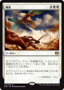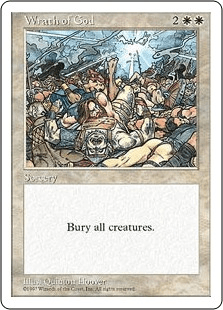 通常全体除去は4マナ《神の怒り》の効果にプラスで何かおまけを付けて5マナで刷られている。《浄化の輝き》《燻蒸》など