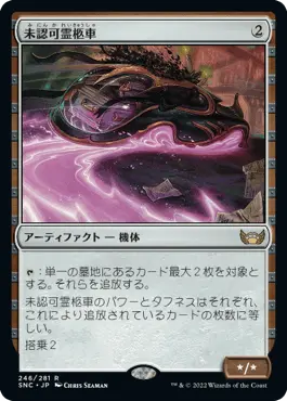 墓地を追放していくと、凄まじいスピードでパワー/タフネスが上がっていきます。登場してアタックやブロックに参加することで、盤面に影響を与えることができます。この手のカードは盤面に影響を与えるものは他に無いですから、この性能こそが《未認可霊柩車》の最大のメリットです。